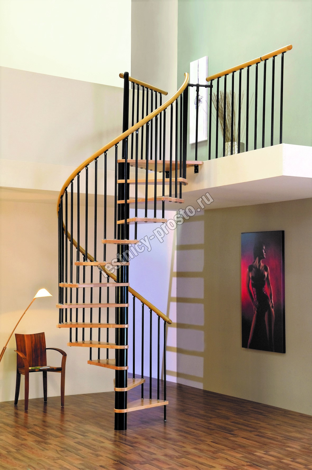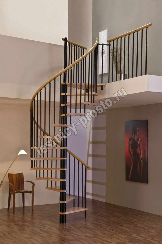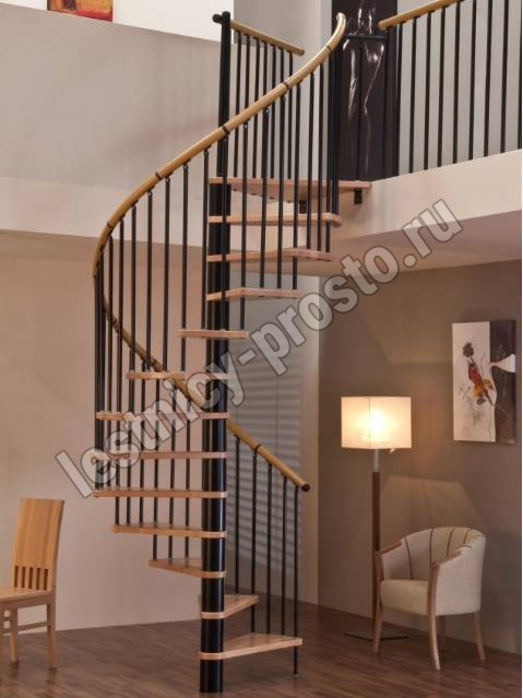 Винтовая лестница SPIRAL WOOD d160 см, чёрная, лакированный дуб