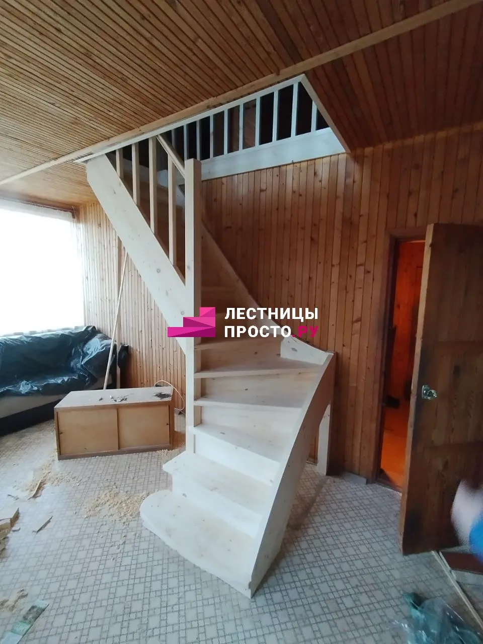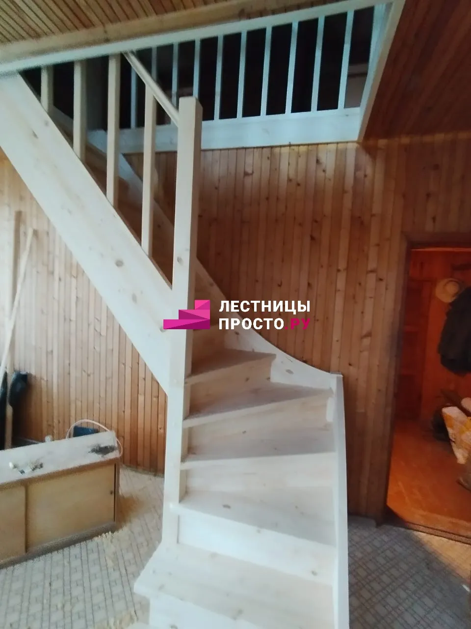 Лестница из сосны с поворотом без покраски