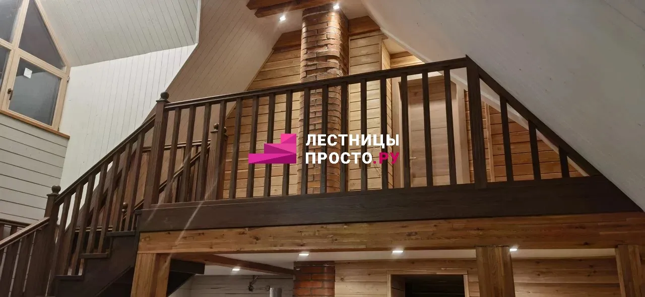 Лестница из сосны в частном доме с дополнительной балюстрадой